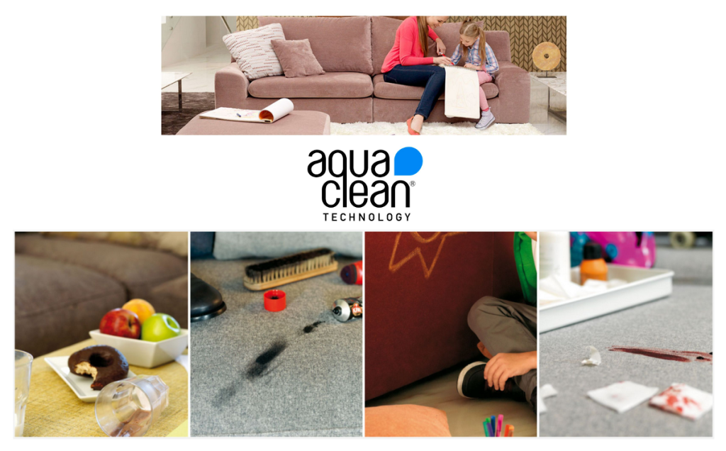 Tehnologija Aquaclean je moderna zaštita tkanine. Ova obrada prekriva svaku nit nevidljivim slojem molekula koji izbjegava da nečistoća prodre u tkaninu.