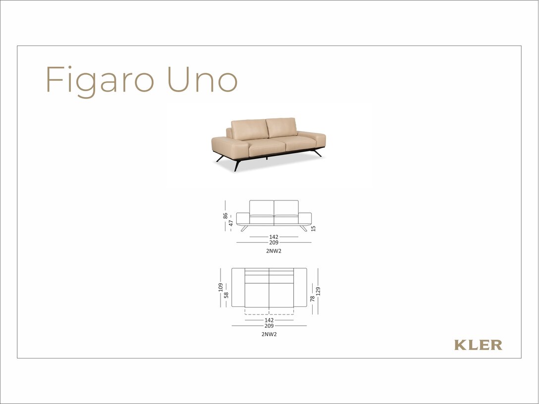 Moderne i elegantne linije garniture Figaro Uno graciozno su podignute na laganim nogama, a masivna i relativno niska leđa popunjena su izrazito mekim jastucima. Konstrukcija ispod širokih i udobnih sjedala naglašena je drvom hrasta.